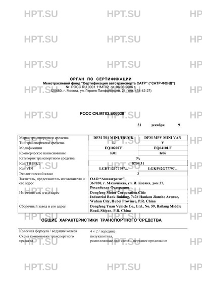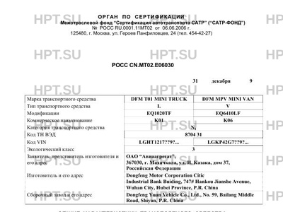| Марка ТС | DFM T01 MINI TRUCK ; DFM MPV MINI VAN |