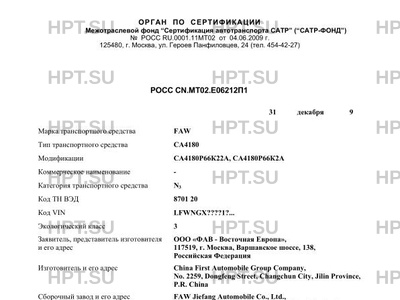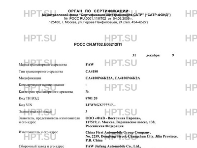| Сборочный завод | FAW Jiefang Automobile Co., Ltd., No.76, Dongfeng Street, Changchun City, Jilin Province, P.R. China |