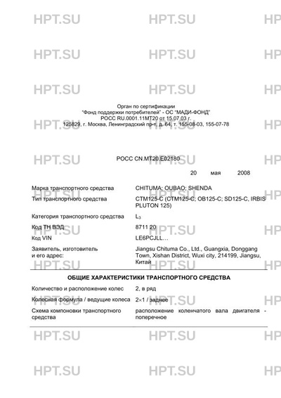 | Тип ТС | СТМ125-С (СТМ125-С; ОВ125-С; SD125-С, IRBIS PLUTON 125) |