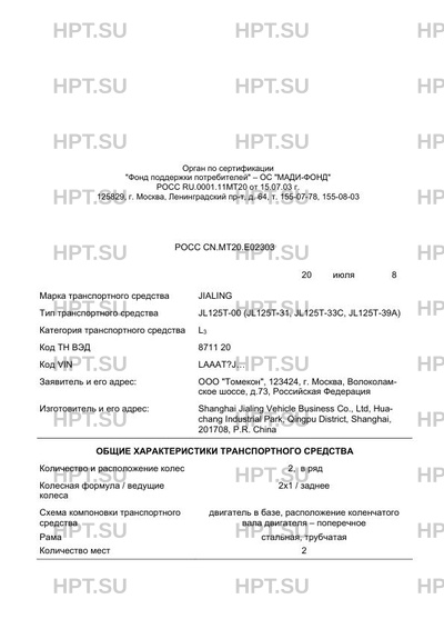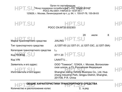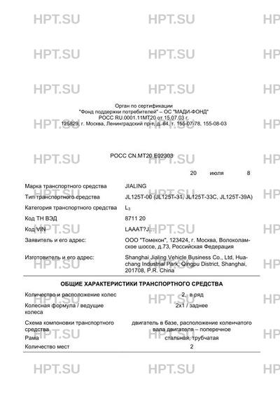 | Тип ТС | JL125T-00 (JL125T-31, JL125T-33C, JL125T-39A) |