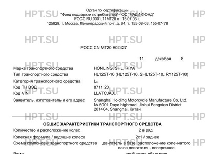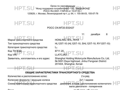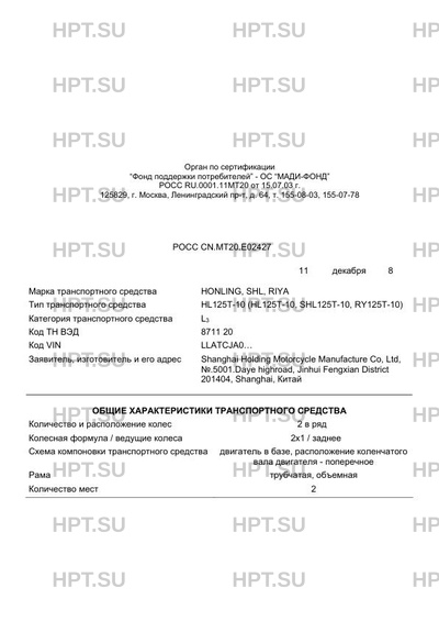 | Коммерческое наименование | HL125T-10 (HL125T-10, SHL125T-10, RY125T-10) |