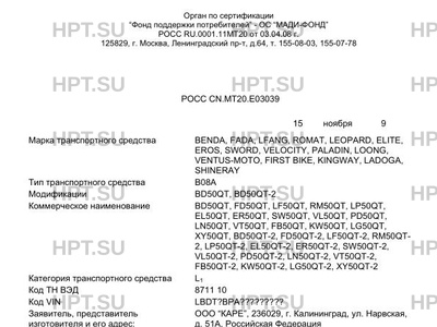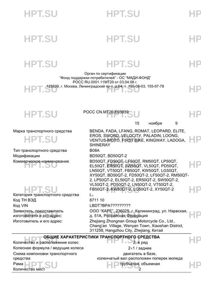 | Марка ТС | BENDA, FADA, LFANG, ROMAT, LEOPARD, ELITE, EROS, SWORD, VELOCITY, PALADIN, LOON… |