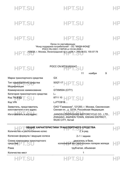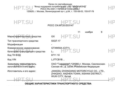 | Коммерческое наименование | GTXM50A (CITY) |