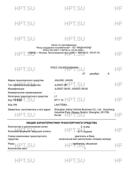 Тип ТС JL50QT-38