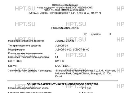 Марка ТС JIALING; JIAXIN