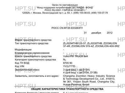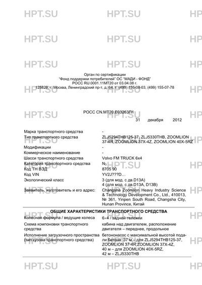 | Тип ТС | ZLJ5294THB125-37, ZLJ5330THB, ZOOMLION 37-4R, ZOOMLION 37X-4Z, ZOOMLION 40X-5RZ |