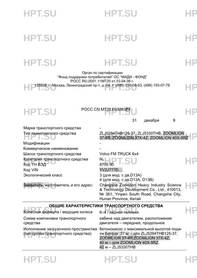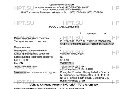 Тип ТС ZLJ5294THB125-37, ZLJ5330THB, ZOOMLION 37-4R, ZOOMLION 37X-4Z, ZOOMLION 40X-5RZ