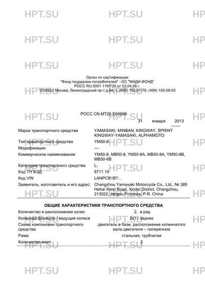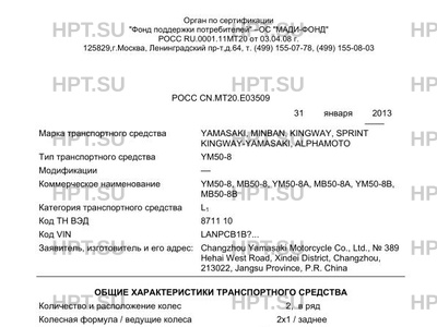 | Марка ТС | YAMASAKI, MINBAN, KINGWAY, SPRINT KINGWAY-YAMASAKI, ALPHAMOTO |
