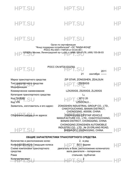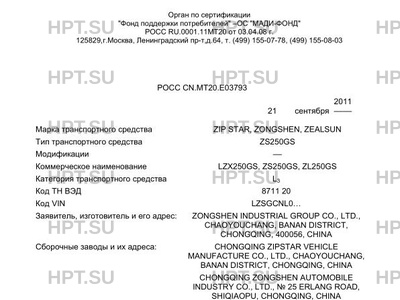 | Марка ТС | ZIP STAR, ZONGSHEN, ZEALSUN |
