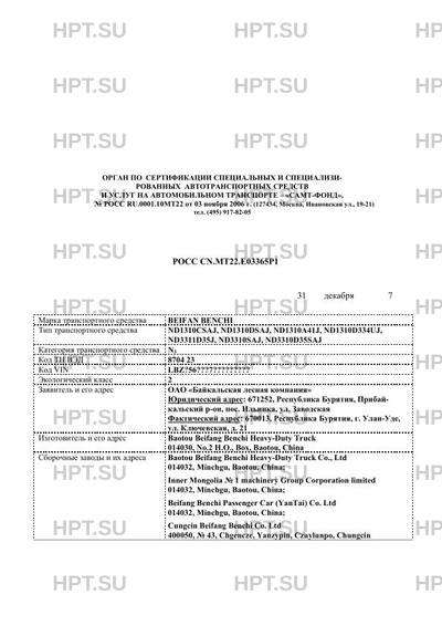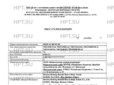 | Предприятие-изготовитель | Baotou Beifang Benchi Heavy-Duty Truck. 014030, No.2 H.O., Box, Baotou, China |