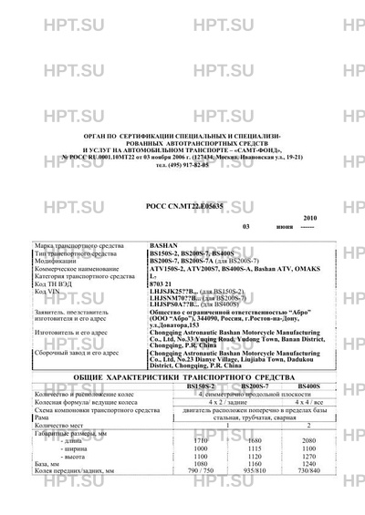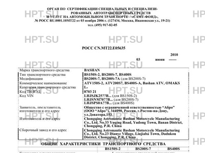 | Коммерческое наименование | ATV150S-2, ATV200S7, BS400S-A, Bashan ATV, OMAKS |