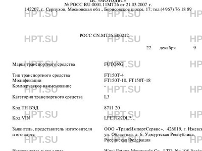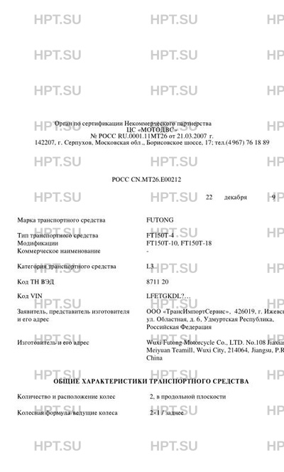 | Тип ТС | FT150T-4 FT150T-10, FT150T-18 |