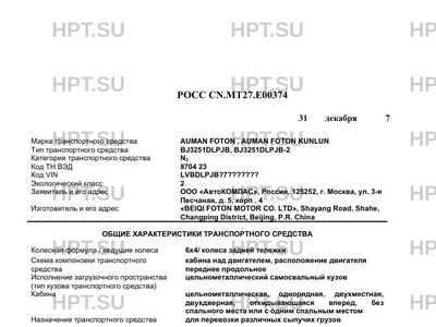 | Марка ТС | AUMAN FOTON , AUMAN FOTON KUNLUN |