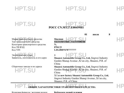 | Сборочный завод | и их адреса Shaanxi Automobile Group Co., Ltd, Jingwei Industry Garden Shanqi Avenue ,Xi’an city, Shaanxi, P.R. of China Xi’an new factory Shaanxi Automobile Group Co., Ltd, Jingwei Industry Garden Shanqi Avenue ,Xi’an city, Shaanxi, P.R. of China |
