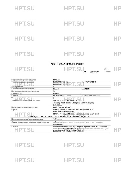 | Тип ТС | BJ1069VCJEA-SA, BJ1069VCPEA-SA, BJ1093VEPED-S |