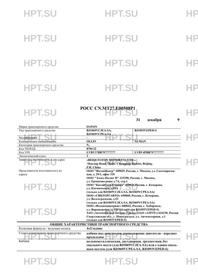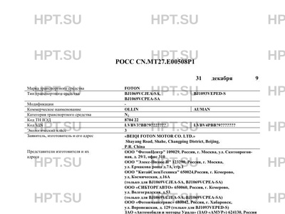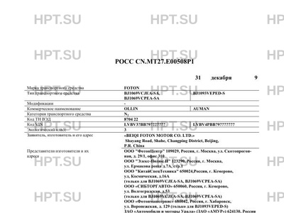 | Марка ТС | FOTON |