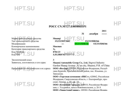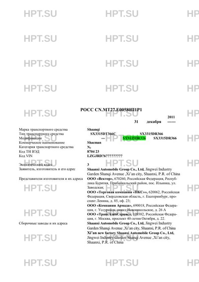 | Предприятие-изготовитель | Shaanxi Automobile Group Co., Ltd, Jingwei Industry Garden Shanqi Avenue, Xi'an city, Shaanxi, P.R. of China |
