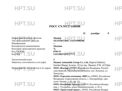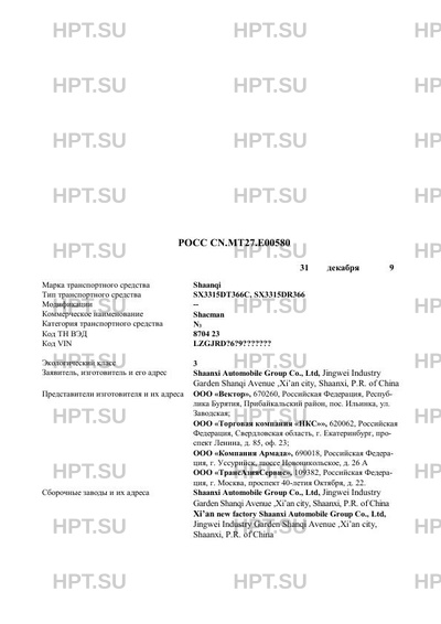 | Предприятие-изготовитель | Shaanxi Automobile Group Co., Ltd, Jingwei Industry Garden Shanqi Avenue, Xi'an city, Shaanxi, P.R. of China |