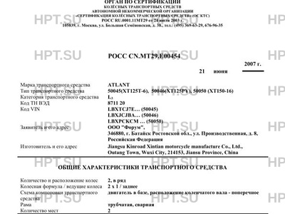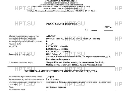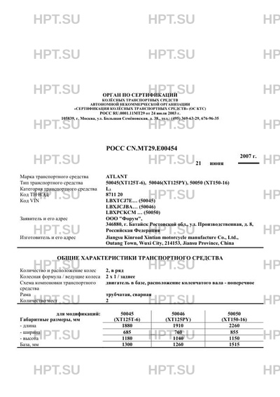 | Тип ТС | 50045(XT125T-6), 50046(XT125PY), 50050 (XT150-16) |