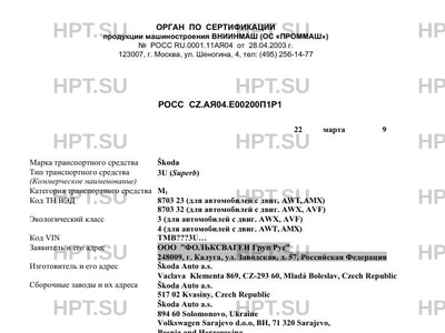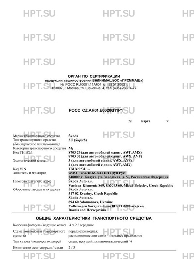 | Код ТН ВЭД | 8703 23 (для автомобилей с двиг. AWT, AMX), 8703 32 (для автомобилей с двиг. AWX, AVF) |