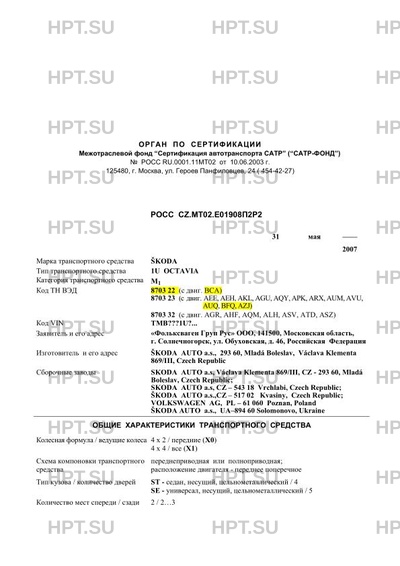 | Код ТН ВЭД | 8703 22 (c двиг. ВСА), 8703 23 (с двиг. AEE, AEH, AKL, AGU, AQY, APK, ARX, AUM, AVU, AUQ, BFQ, AZJ), 8703 32 (с двиг. AGR, AHF, AQM, ALH, ASV, ATD, ASZ) |