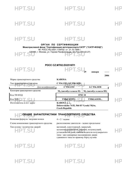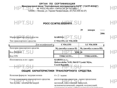 Оборудование ТС отопитель салона, система вентиляции, противобуксовочная система, биотуалет WC/CT 100, видеосистема: видеомонитор MB1 и видеоплееры Blaupunkt PO1/MV PO8; аудиосистема Blaupunkt: радиомагнитола, CD-плеер, усилитель, колонки; кондиционер Thermo King (хладагент R134a); кухня: кофеварка Jedematic, холодильник Frenzel (хладагент R134a) При проезде транспортных средств KAROSA C 934.1351, LC 936.1038 по автомобильным дорогам общего пользования, а также по улицам городов и населенных пунктов должны быть выполнены требования "Инструкции по перевозке крупногабаритных и тяжеловесных грузов автомобильным транспортом по дорогам Российской Федерации". автобус KAROSA C 934.1351, LC 936.1038