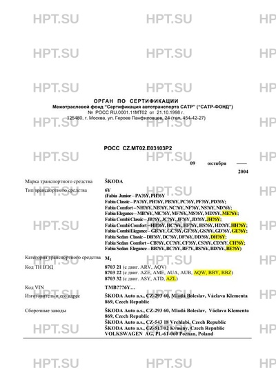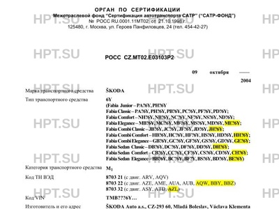 Коммерческое наименование 6Y (Fabia Junior - PA?6Y, PH?6Y Fabia Classic - PA?6Y, PH?6Y, PB?6Y, PC?6Y,…