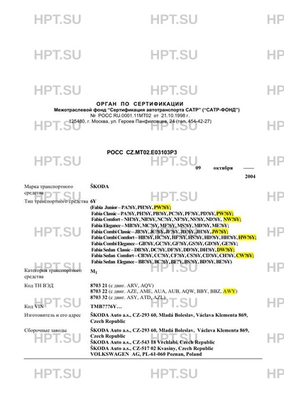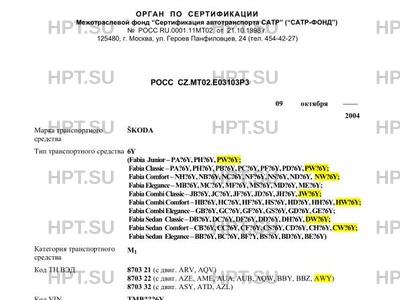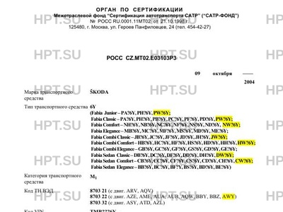 Коммерческое наименование 6Y (Fabia Junior - PA?6Y, PH?6Y, PW?6Y; Fabia Classic - PA?6Y, PH?6Y, PB?6…