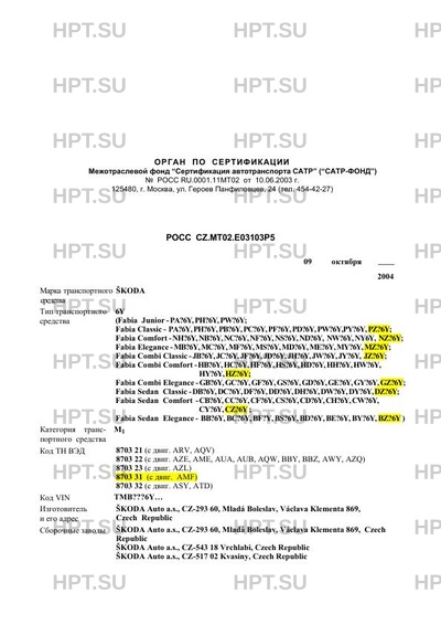 Тип ТС 6Y (Fabia Junior -PA?6Y,PH?6Y,PW?6Y; Fabia Classic - PA?6Y,PH?6Y,PB?6Y,PC?6Y,PF…