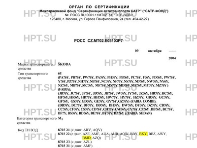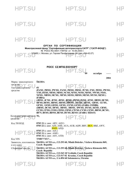 | Оборудование ТС | в зависимости от комплектации возможна установка следующего оборудования: подушки безопасности; системы MSR, EDS, ASR; передние противотуманные фары; регулируемые по высоте сиденья водителя и переднего пассажира; центральный замок с дистанционным управлением или без него; электростеклоподъемники передних или всех дверей; тонированные стекла; электрообогрев передних сидений; кондиционер (хладагент R134A); омыватель ветрового стекла с электрообогревом; наружные зеркала с электроприводом и электрообогревом; автомагнитола; навигационная система; оборудование для мобильной связи; аудиоподготовка; люк с электроприводом; система помощи при парковке; буксирное устройство, кожаная обивка. SKODA 6Y (PA?6Y, PH?6Y, PW?6Y, PA?6Y, PH?6Y, PB?6Y, PC?6Y, F?6Y, PD?6Y, PW?6Y,Y?6Y, РZ?6Y,NH?6Y,NB?6Y,NC?6Y,NF?6Y,NS?6Y,ND?6Y, NW?6Y,NY6Y, NZ?6Y, MB?6Y, MC?6Y, MF?6Y,MS?6Y,MD?6Y,ME?6Y,MY?6Y,MZ?6Y) (FABIA); (JB?6Y, JC?6Y, JF?6Y, JD?6Y, JH?6Y, JW?6Y,JY?6Y, JZ?6Y, HB?6Y,HC?6Y,HF?6Y, HS?6Y, HD?6Y, HH?6Y, HW?6Y, HY?6Y, HZ?6Y, GB?6Y, GC?6Y, GF?6Y, GS?6Y, GD?6Y, GE?6Y, GY?6Y,GZ?6Y) (FABIA COMBI); (DB?6Y, DC?6Y, DF?6Y, DD?6Y, DH?6Y, DW?6Y, DY?6Y, DZ?6Y, CB?6Y, CC?6Y, CF?6Y,CS?6Y,CD?6Y,CH?6Y,CW?6Y,CY?6Y,CZ?6Y,BB?6Y,BC?6Y,BF?Y,BS?6Y, BD?6Y,BE?6Y,BY?6Y,BZ?6Y)(FABIA SEDAN) |