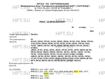 | Марка ТС | ŠKODA |