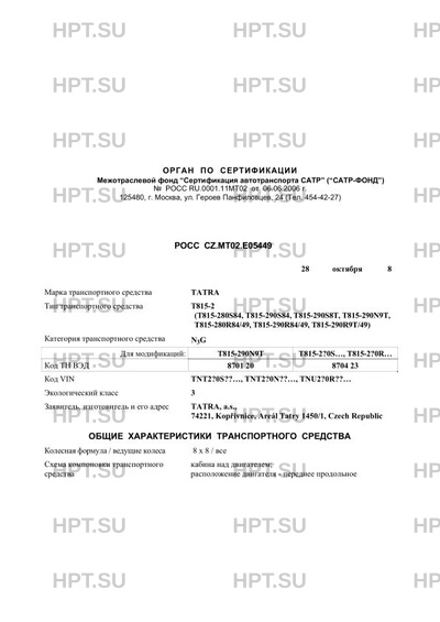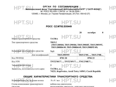 | Предприятие-изготовитель | TATRA, a.s., 74221, Koprivnice, Areal Tatry 1450/1, Czech Republic |
