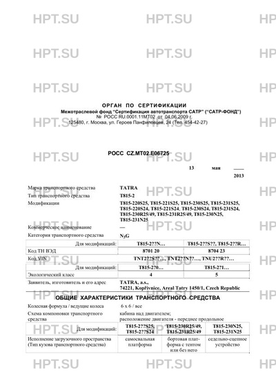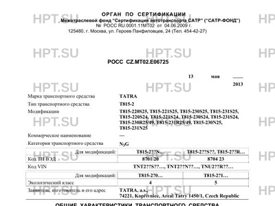| Код ТН ВЭД | 8701 20 (для T815-2??N…), 8704 23 (для T815-2??S??, T815-2??R…) |