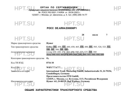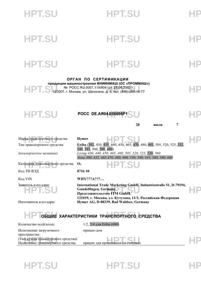 | Марка ТС | Hymer |