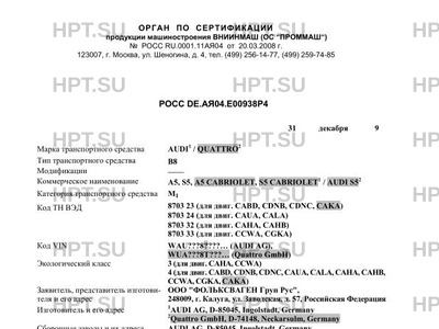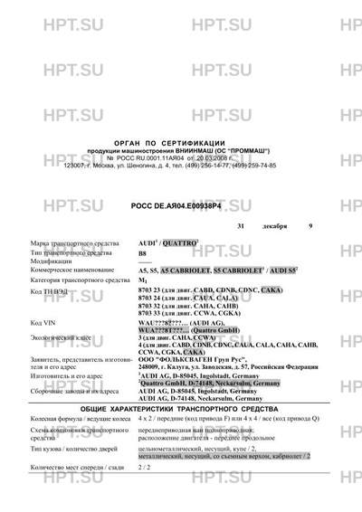 | Коммерческое наименование | A5, S5, A5 CABRIOLET, S5 CABRIOLET1 / AUDI S52 |