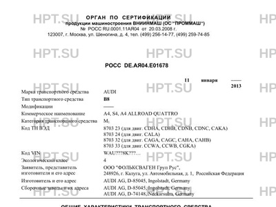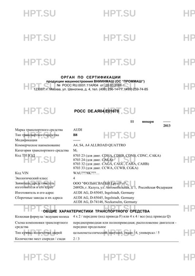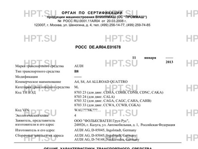 | Коммерческое наименование | A4, S4, A4 ALLROAD QUATTRO |