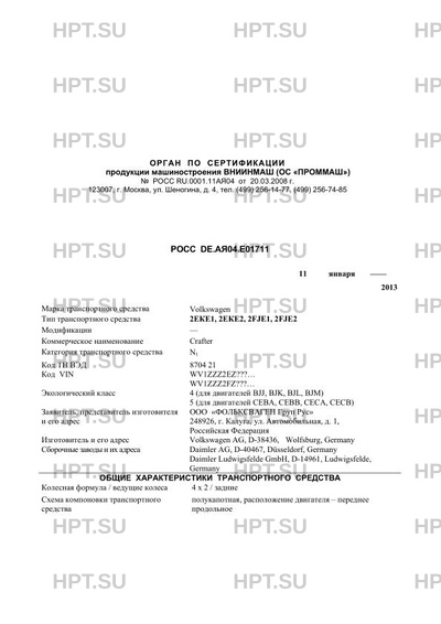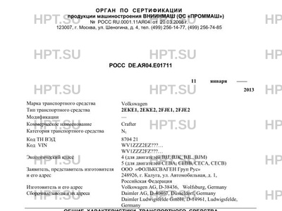 | Предприятие-изготовитель | Volkswagen AG, D-38436, Wolfsburg, Germany Сборочные заводы и их адреса: Daimler AG, D-40467, Dusseldorf, Germany Daimler Ludwigsfelde GmbH, D-14961, Ludwigsfelde, Germany |