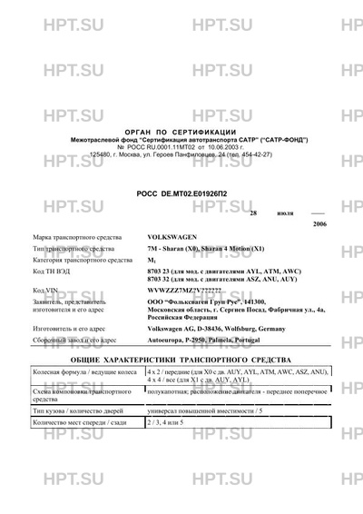 | Тип ТС | 7M - Sharan (X0), Sharan 4 Motion (X1) |