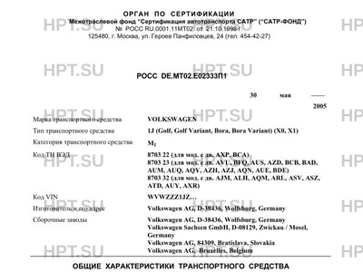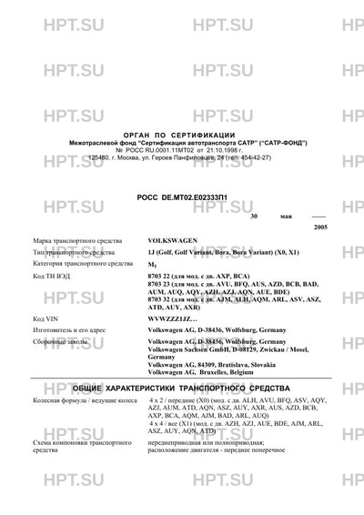 | Тип ТС | 1J (Golf, Golf Variant, Bora, Bora Variant) (X0, X1) |