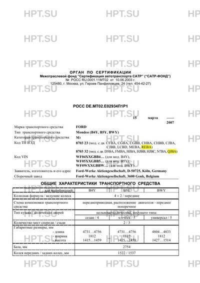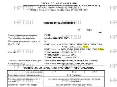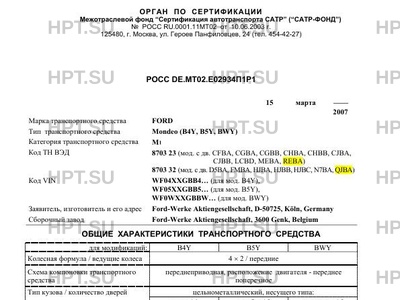 | Тип ТС | Mondeo (B4Y, B5Y, BWY) |