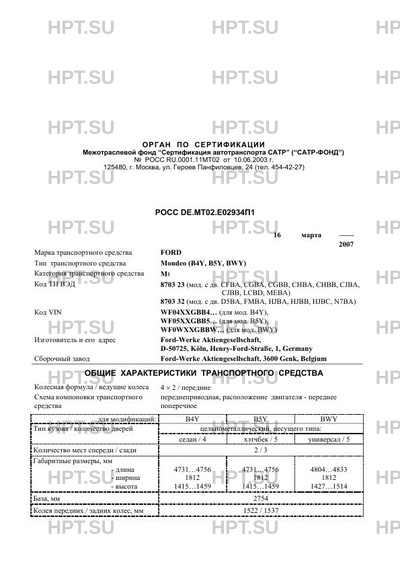 | Тип ТС | Mondeo (B4Y, B5Y, BWY) |