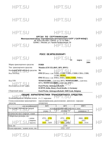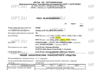 | Тип ТС | Mondeo (CD 132) (B4Y, B5Y, BWY) |