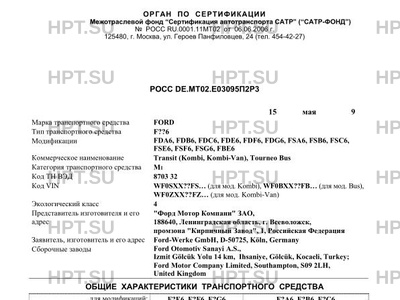 | Представитель изготовителя | "Форд Мотор Компани" ЗАО, 188640, Ленинградская область, г. Всеволожск, промзона "Кирпичный Завод", 1, Российская Федерация |