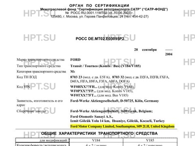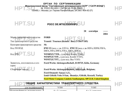 | Коммерческое наименование | Transit / Tourneo (Kombi / Bus) (V184/V185) |
