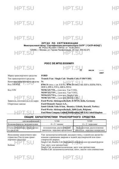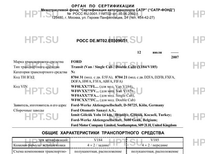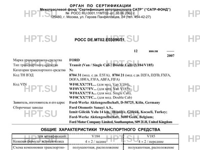 | Тип ТС | Transit (Van / Single Cab / Double Cab) (V184/V185) |