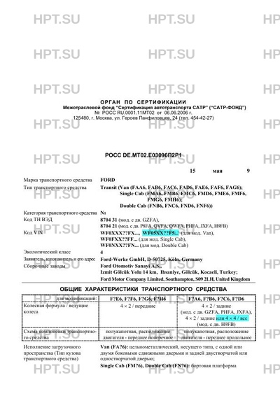 Коммерческое наименование Transit (Van (FAA6, FAB6, FAC6, FAD6, FAE6, FAF6, FAG6); Single Cab (FMA6, FMB6…