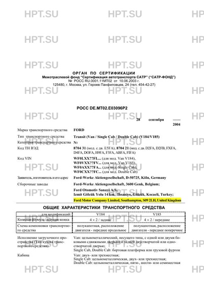 | Коммерческое наименование | Transit (Van / Single Cab / Double Cab) (V184/V185) |
