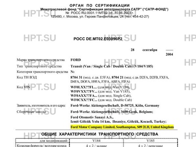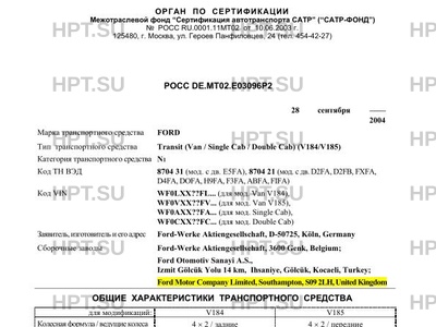 | Тип ТС | Transit (Van / Single Cab / Double Cab) (V184/V185) |