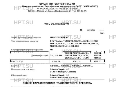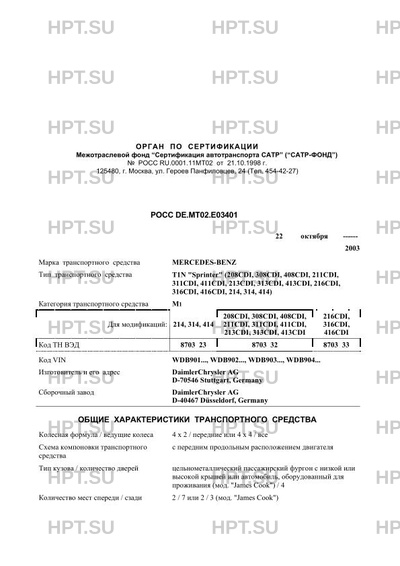 | Коммерческое наименование | T1N "Sprinter" (208CDI, 308CDI, 408CDI, 211CDI, 311CDI, 411CDI, 213CDI, 313CDI, 413CDI, 216CDI, 316CDI, 416CDI, 214, 314, 414) |
