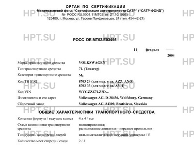 | Код ТН ВЭД | 8703 24 (для мод. с дв. AZZ, AXQ) 8703 33 (для мод. с дв. AYH) |